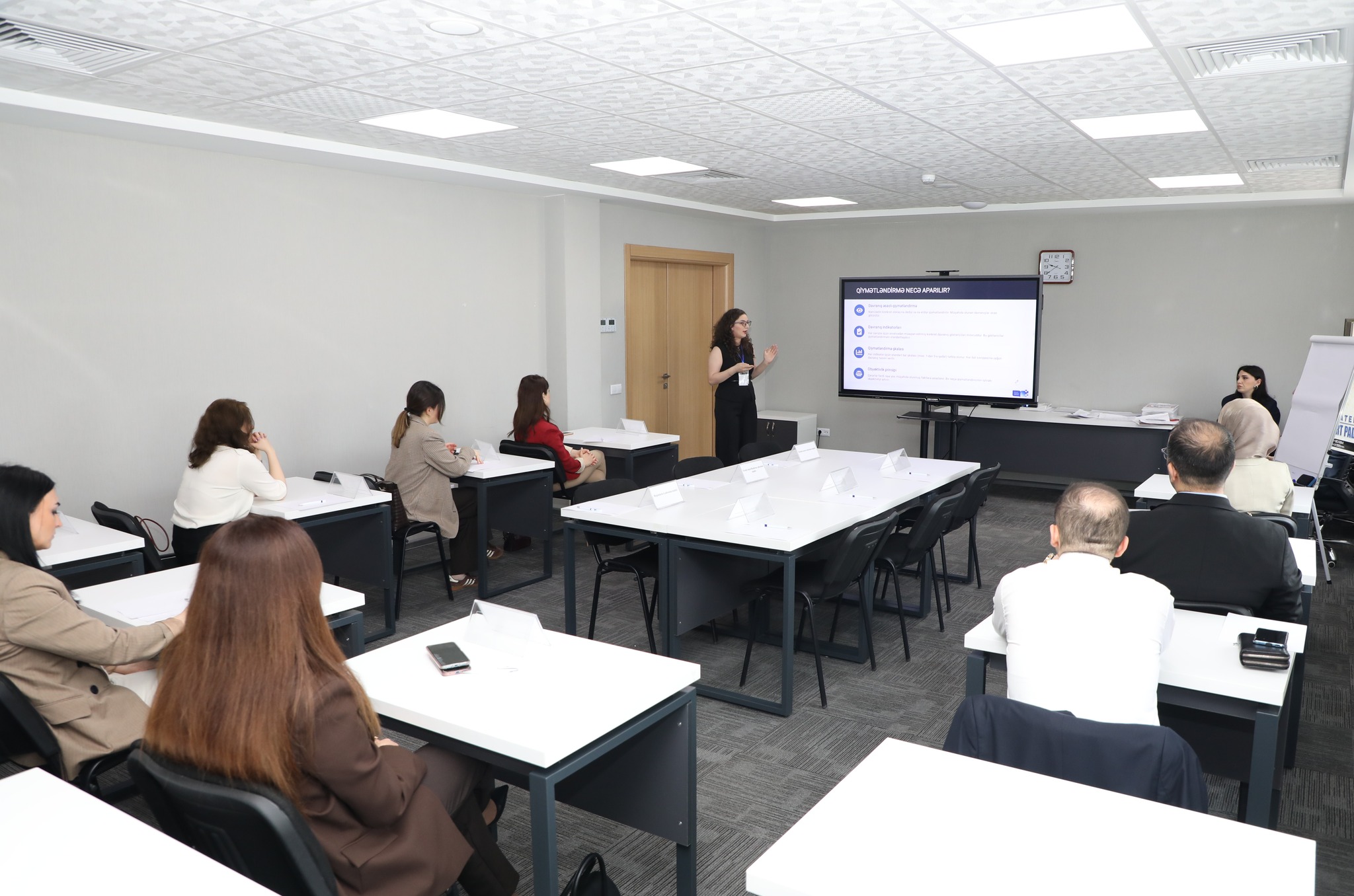 Məşğələlər “Səriştə əsaslı qiymətləndirmə metodları: simulyasiya oyunları və STAR metodu ilə müsahibələr”, “Nəzəriyyədən tətbiqə: Xarici dillər üzrə dinləmə və oxu mətnləri əsasında qiymətləndirmə tapşırıqlarının hazırlanması”, “Təhsil keyfiyyətinin təkmilləşdirilməsi: Dərsliklərin monitorinqi”, “Avtomatlaşdırılmış Yazı Yoxlama Sistemində yazı işlərinin meyarlar əsasında qiymətləndirilməsi (Azərbaycan dili, ingilis dili və riyaziyyat fənləri üzrə)” və “Emosional zəka nümunəsində qiymətləndirmə proseslərinin rəqəmsallaşdırılması” mövzularına həsr olunub.