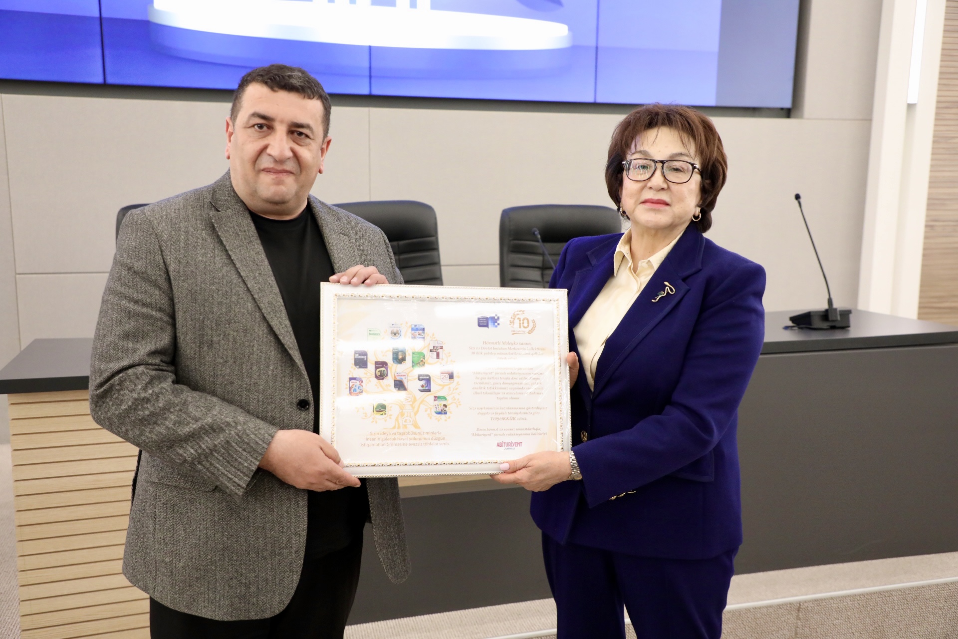 Daha sonra “Abituriyent” jurnalı redaksiyasının baş redaktoru Məhərrəm Bədəlov çıxışında Məleykə xanıma “Abituriyent” jurnalı redaksiyasının davamlı inkişafına göstərdiyi diqqətə və dəyərli tövsiyələrinə görə təşəkkür edib.